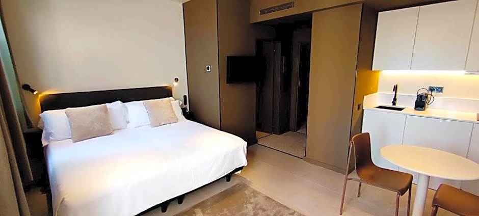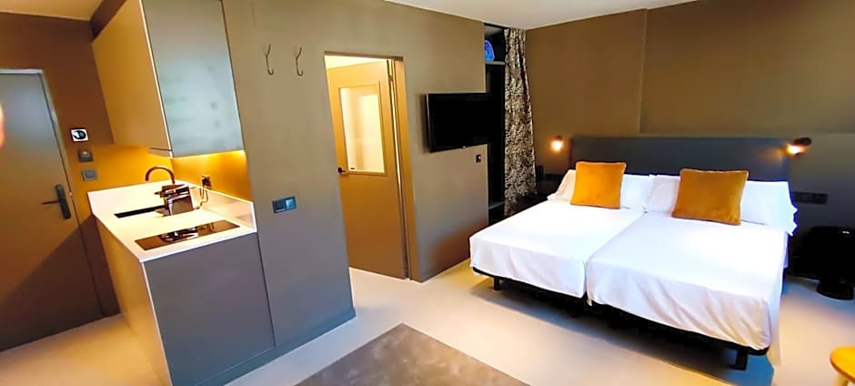 Accommodations span a wide range, from compact studios to larger apartments and penthouses. Examples include the Studio Suite with ground-floor access and a patio, the Apartment Penthouse, and loft configurations such as Loft with Terrace or Loft with Terrace and Queen bed, offering flexible options for couples, families, or groups.